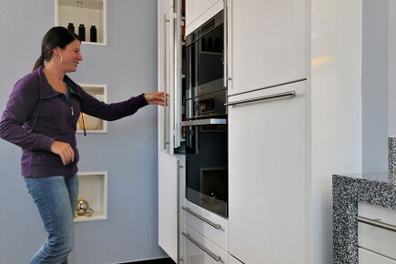 Dass man den Backofen statt zu Boden auch ergonomischer, nämlich in Brusthöhe, einbauen kann, hat sich ja mittlerweile herumgesprochen. Aber denken Sie mal weiter: Was ist mit dem Geschirrspüler? Hier muss man sich doch eigentlich viel häufiger bücken, wenn es darum geht, alles Geschirr ein- und auszuräumen. Daher macht auch hier ein halbhoher Einbau wirklich Sinn.