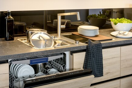 Beim Austausch vom vollintegrierten Geschirrspüler ist genaues Maßnehmen das A und O. Die Montage gelingt dem Profi mit nur zwei Schrauben und Winkeln. Das Ergebnis überzeugt ohne Worte: Es sieht einfach Klasse aus.